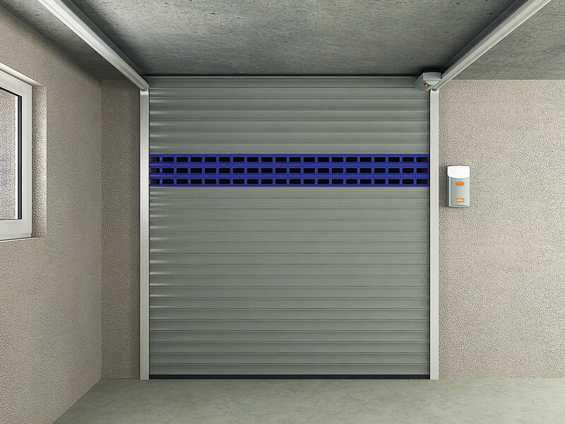 Selbst bei Ausfall des Motors oder einem Bruch der Federn bleibt das Tor in der momentanen Position. Der Antriebsmotor sitzt in der Mitte des Garagentors und ermöglicht selbst bei niedriger Deckenhöhe große Breiten