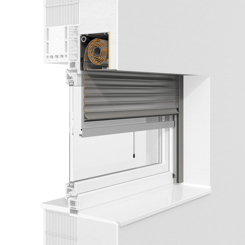 Das Rollladensystem passt sich in die Fassade ein und kann wahlweise mit eckiger oder fünfeckiger Frontblende verwendet werden.